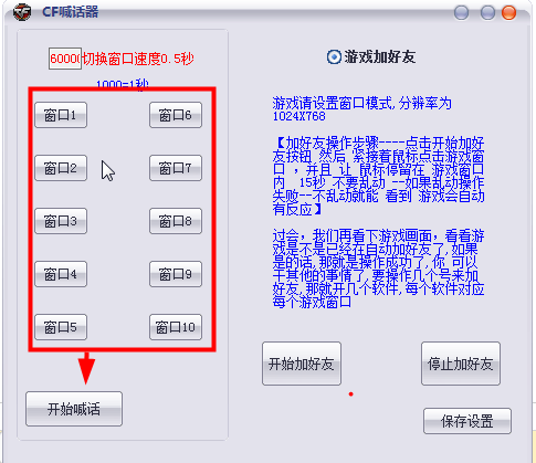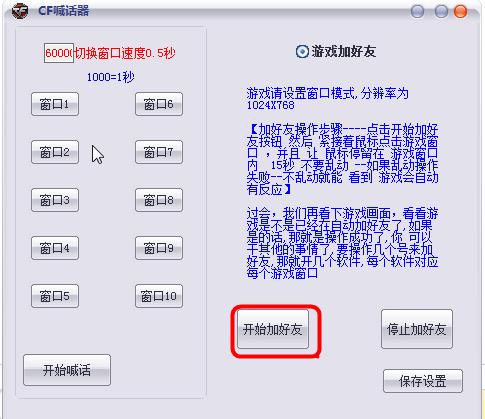 1、,先进入cf喊话器的界面,点击【开始加好友】按钮