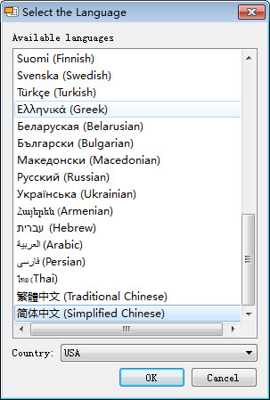 1、软件第一次启动会出现如下图的窗口,请先选择最底端的简体中文在按OK;