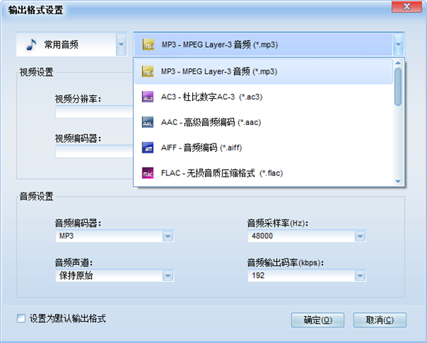 - 支持WAV/AAC/AC3/AMR/OGG/RA/WMA/MKA/AU/FLAC等转换到MP3;