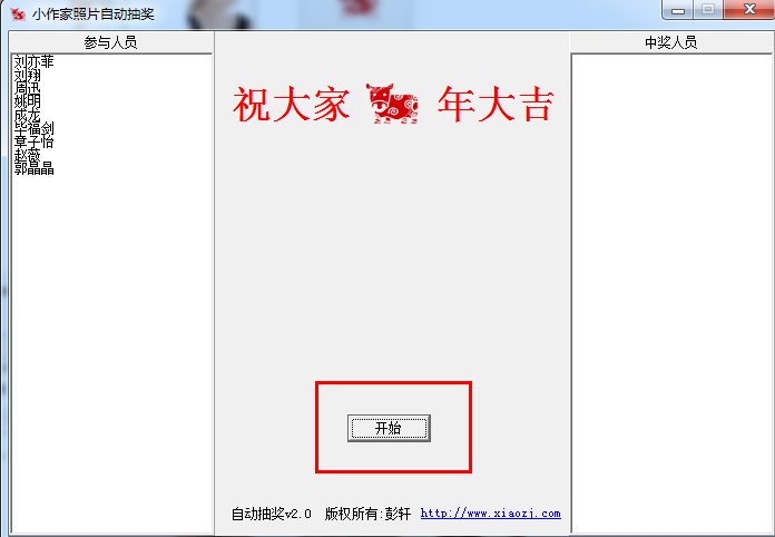 第二步:打开软件,点击“开始”按钮就可以进行抽奖了。