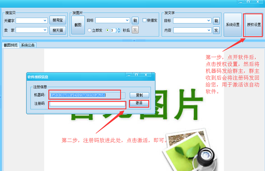 开软件后,在软件的右上方可以看到【授权设置】,在授权设置里提取机器码。(群号:130573792)