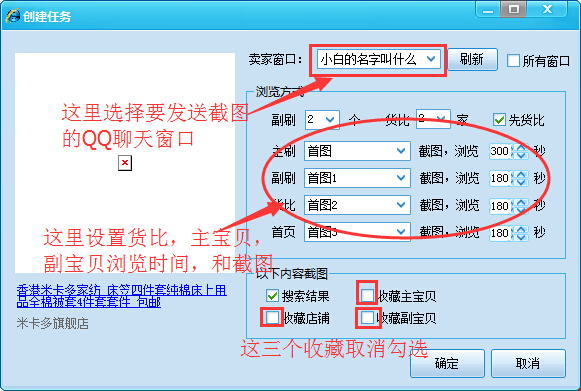 3.操作简单,只需填写好关键词和卖家ID,它将自动搜索主宝贝-货比三家-店内浏览主副宝贝-收藏。