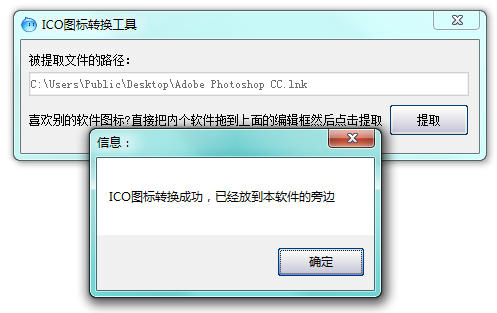 喜欢别人的软件图标?直接把需要转换图标的软件拖到本软件的编辑框然后点击提取,这个软件图标就提取出来了,很给力哦~~~