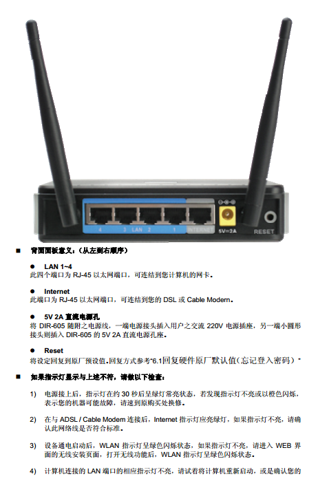 1.1 D-Link DIR-605无线宽带路由器产品规格............................... 1