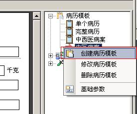 1、在患者资料的参数栏选中[病历模板],鼠标右键然后选择[创建病历模板],打开自定义病历模板窗口。