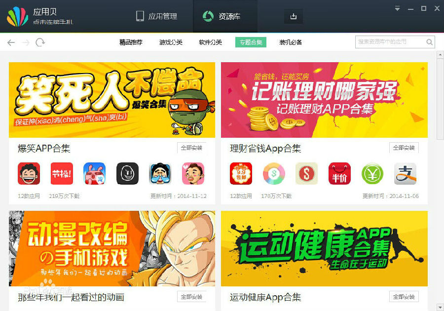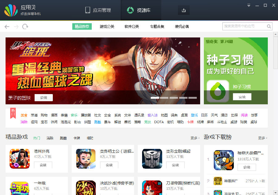 海量资源重新整合,快速更新最新游戏应用,细致的分类,让你只有你想不到的,没有应用贝找不到的