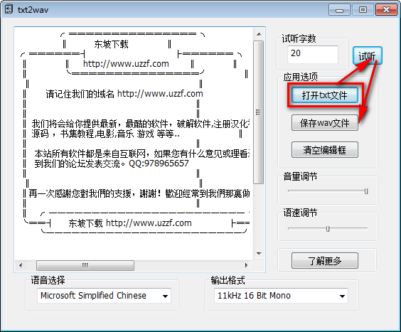 3.txt2wav应用范围很广,你可以用它来听小说,学英语等。