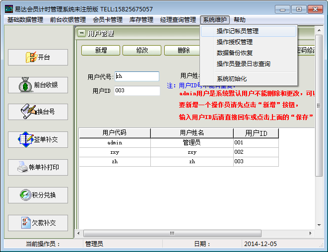 操作记帐号管理,操作授权管理,数据备份恢复,操作员日志查询,系统初始化。