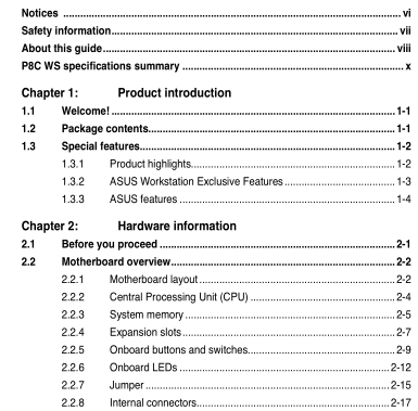 华硕P8C WS主板采用全新英特尔® 工作站等级C216芯片组,双服务器等级英特尔® 千兆网卡可降低CPU使用率及提升传输速率。以下文档是华硕P8C WS用户手册,为英文版,有需要的朋友可立即下载此文档。