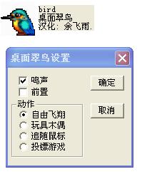 这个程序的原名是 DeskTopBird_Kingfisher,但在网上用这个关键词搜索的话几乎找不到此程序,反而用 "桌面翠鸟" 作关键词却能找到很多日文版的---其实 "Kingfisher" 也就是 "翠鸟" 的意思,所以我入乡随俗也就称其为 "桌面翠鸟" 了。
