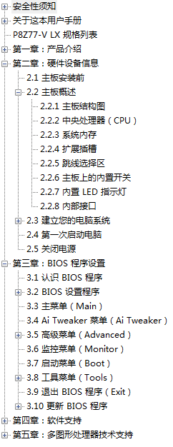 华硕P8Z77-V LX主板采用英特尔® 智能响应技术可大幅提升整体系统性能,将用户的固态硬盘(可用空间最少18.6GB)作为智能响应技术的缓存盘,用于存放缓存文件(系统仍然安装在机械硬盘中),使得机械硬盘可以作为更大容量的主盘存储数据,以提高系统速度。以下文档是华硕P8Z77-V LX用户手册,有需要的朋友可立即下砸此文档。