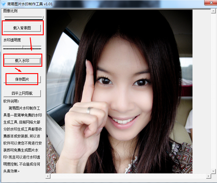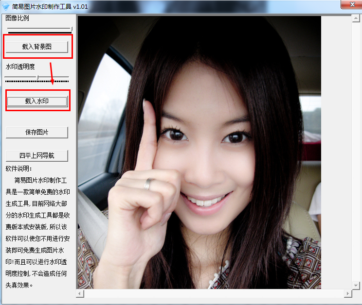 简易图片水印制作工具是一款简单免费的水印生成工具,目前网络大部分的水印生成工具都是收费版本或安装版,所以该软件可以使您不用进行安装即可免费生成图片水印!而且可以进行水印透明度控制和进行水印拖拽,不会对图片造成任何失真效果.