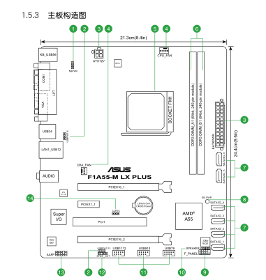 华硕F1A55-M LX PLUS/F1A55-M LX用户手册——主板结构图