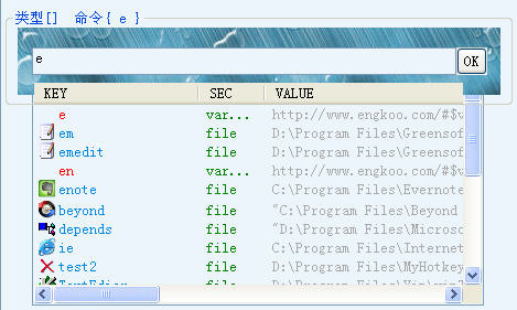 飞扬热键,可用来作为管理绿色软件及常用程序的平台,也可用来管理常用的文档。此外,飞扬热键还自带了很多实用的小功能,如:辅助记忆的飞扬小字典、鼠标中键调整窗口大小与位置、仅用鼠标快速剪贴、复制、粘贴与搜索、为代码生成DoxyGen风格的注释、C++代码的辅助编辑、使用VIM、UE等外部工具快速编辑任意选中的文本、可自由定义的屏幕键盘、Alt+Tab切换窗口增强功能、多桌面管理工具、日志查看分析工具、简单的定时提醒工具等等,各种小功能还在不断增加,请您自己去挖掘发现!