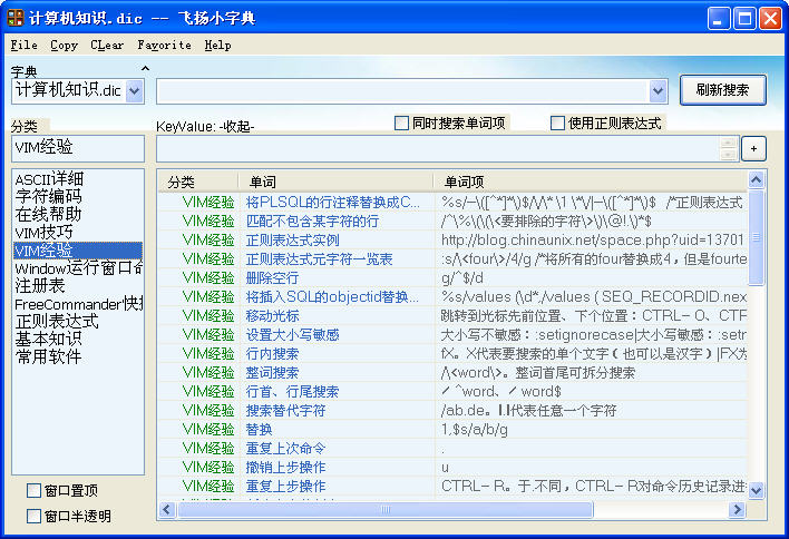 2. 飞扬小字典 V2.13 -- 辅助记忆的小工具,可极速地新增、实时搜索、管理文本碎片,
