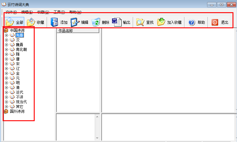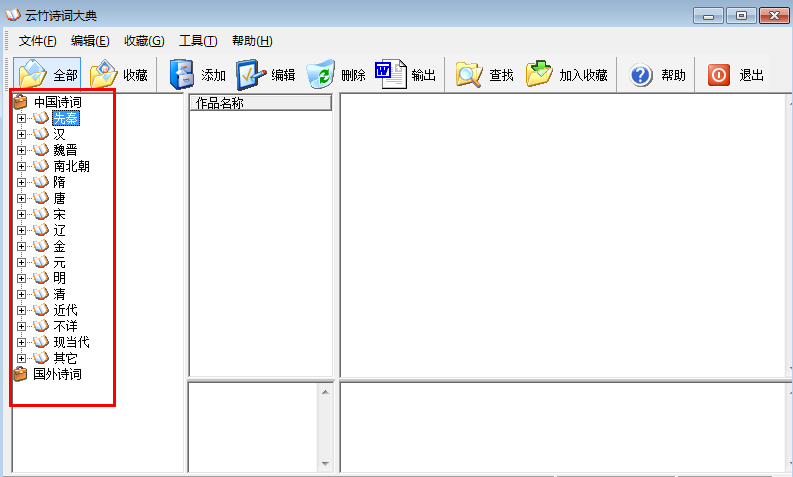 诗词歌赋是是语文的一部分,是一门文学艺术。很多网友们都喜欢诗词艺术。那么《云竹诗词大典》是古今中外经典诗词、诗歌的浏览及管理软件,系统是免费软件,共收集中外著名诗词六万四千余首,合计中外作家四千七百余人。接下来,介绍一下这款软件。