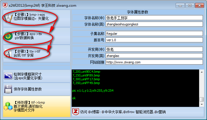 第7步: 将data目录下的zw2012.ttf改名为 zhanglao.ttf,这就是最终的字体了。