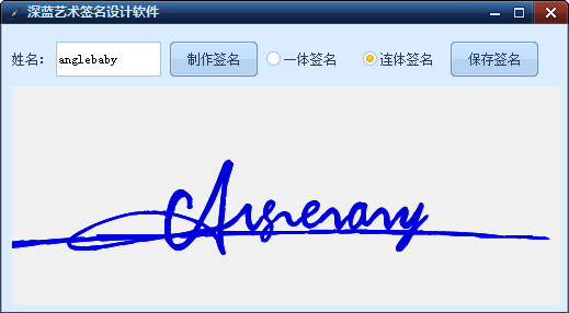 深蓝艺术签名设计软件是一款绿色免费的一笔签名设计软件。签名设计精巧、操作简单,只需输入姓名,设置需要的签名模式即可生成签名,对照练习即可签出一手好名。支持保存签名为GIF文件,随时对照练习,欢迎有需要的用户下载使用!