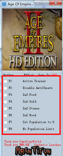 帝国时代2高清版六项修改器其实就是款同名游戏的最强大的修改软件,他就是根据大家的需求来进行研发的,让大家能够在游戏中具备无限食物、无限金、无限石材等等辅助设置功能,从而更加轻松感受游戏带来的乐趣!