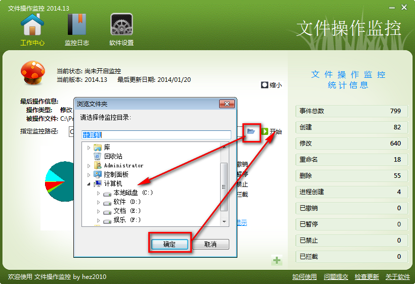 1、选择指定监控的路径,点击如下图的按钮选择,选择完毕后,点击开始按钮。