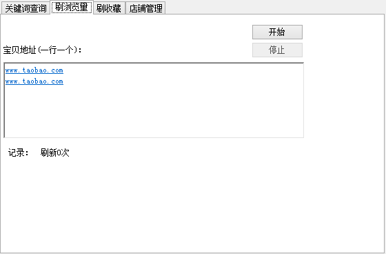 2、淘宝宝贝刷浏览量:复制宝贝地址到软件中,一行一个,点击【开始】按钮开刷
