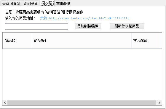 3、淘宝商品刷收藏:复制商品地址到软件中,添加到搜藏库就可以刷收藏了