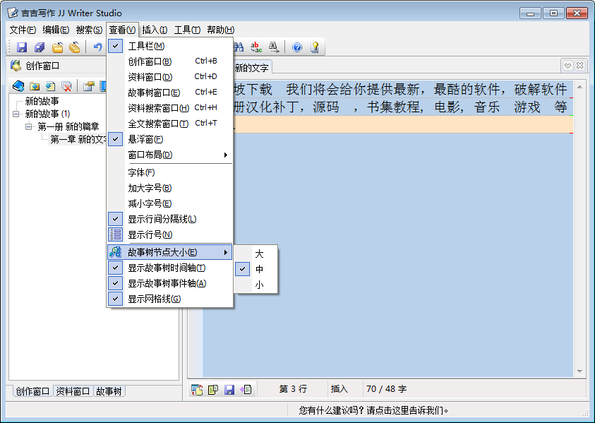 吉吉写作是一款免费的绿色写作辅助软件,可以帮助用户更轻松创作文章,能够为你提供一个高效的写作平台,帮助你从一些烦琐的事情中解脱起来,把精力集中在创作上,提高你的写作效率。自动保存备份功能可使你安心写作,不用再担心由于一次意外而丢掉自己的劳动成果。