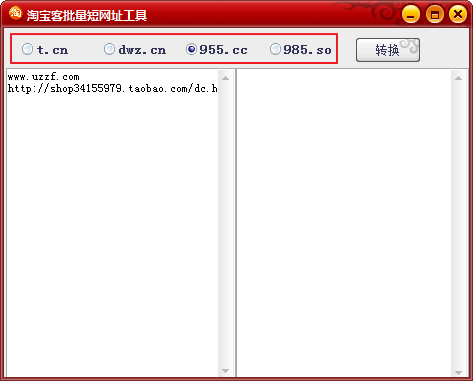 淘宝客批量短网址工具是一款绿色免费的用于批量生成淘宝客短网址的小工具。软件支持生成4种后缀形式,欢迎有需要的用户下载使用!