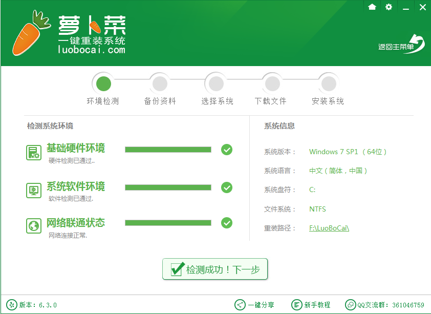 萝卜菜一键重装系统是一款纯绿色重装系统软件,无需安装,简单易用,安全快捷,让您一键完成系统重装,省时省心!萝卜菜一键重装系统能够让您无需光盘、U盘,无需懂技术,几秒钟即可学会在线完成系统重装,同时萝卜菜一键重装系统软件能够一键完成资料或系统的备份和还原工作,数据安全有保障。有了萝卜菜一键重装系统软件让您从此告别繁琐!