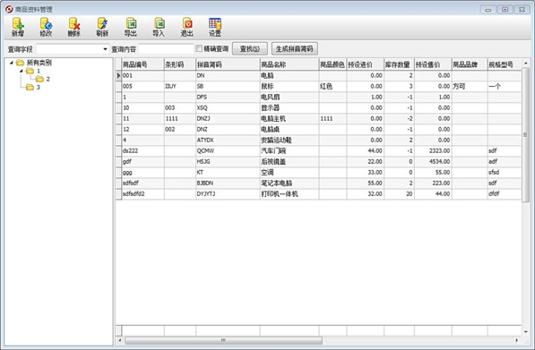 3)更加细致的资料分类,如:商品类目、客户划分、商品规格型号、颜色等的设置