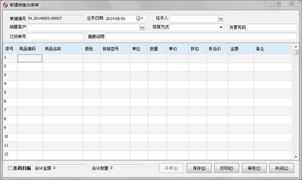 2)自动合计表格中的商品信息,如:金额小计,数量,金额总计等