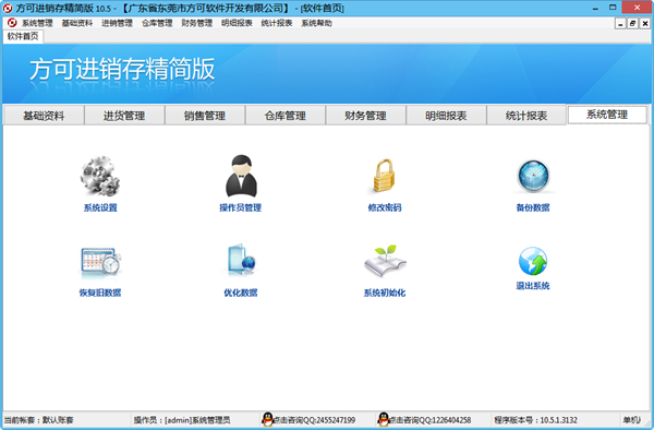 1)可以设置系统全局参数,如打印标题,公司信息,小数点和各方面的系统变量