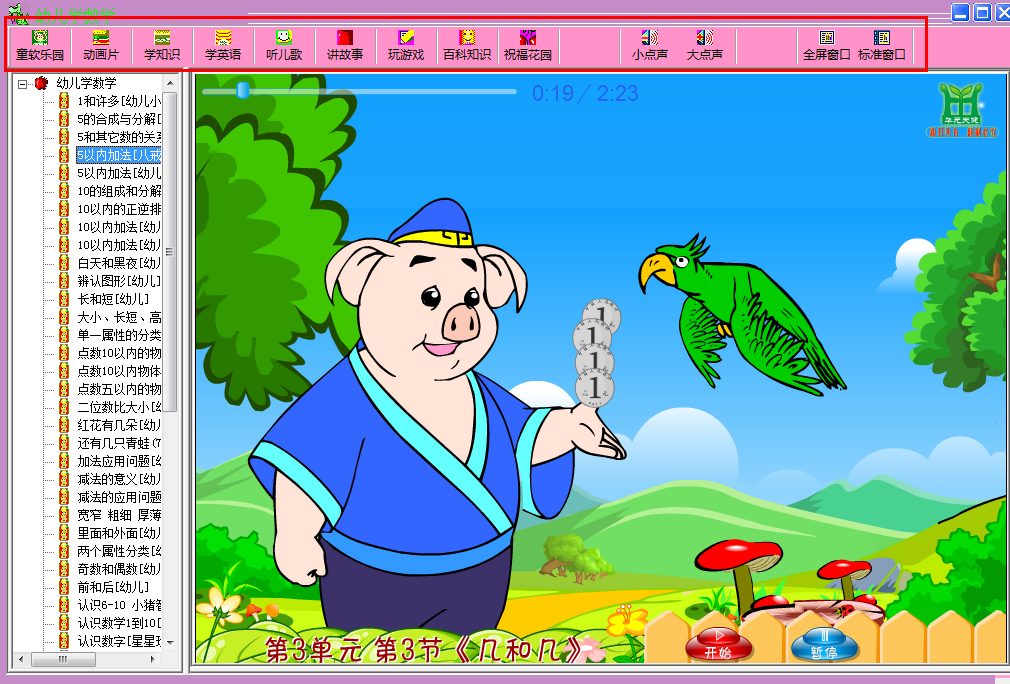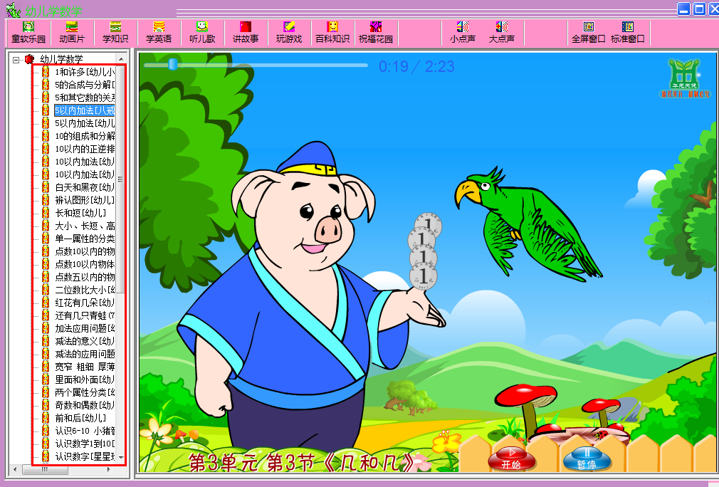 幼儿学数学是一款纯免费的儿童学习数学的多媒体软件。幼儿学数学是专门为3―6岁幼儿设计的有趣的数学学习动画教材,动画加上人声配合技巧,小朋友们会感兴趣噢!