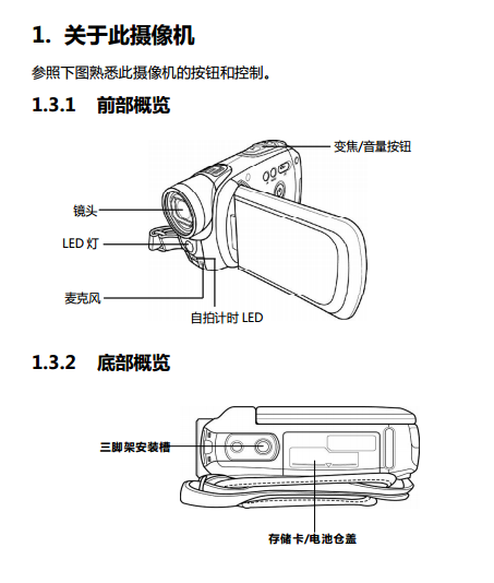 1.3 打开视频相机的包装.......................................... 2