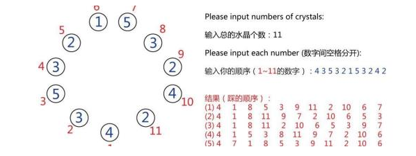 4、之后就会显示出正确的踩点的顺序(对应你填写的起始和终点顺序)。比如显示的顺序是“4 1 8 5 3 9 11 2 10 6 7”,那么就是先踩按照你填写顺序的第四个、再踩第一个、再踩第八个……等等。