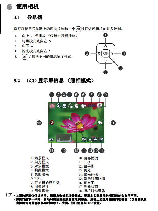 3.2 LCD显示屏信息 (照相模式)........................ 6