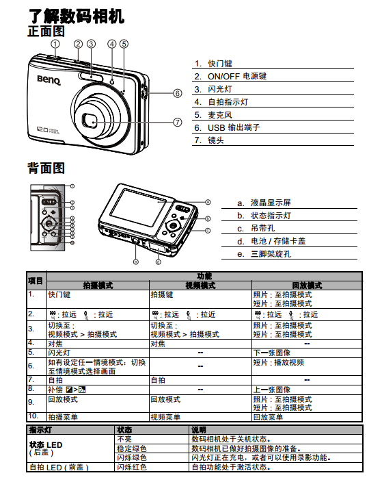 明基c1268数码相机采用松下1200 万像素1/2.3 英寸CCD,230k 像素2.7'' LCD ,图像分辩率 12M(3968*2976) / 8M / 4M/ 2M / VGA,这里给大家带来的是明基c1268使用说明书(数码相机用户手册),大家可以进行免费的下载benq明基c1268说明书。