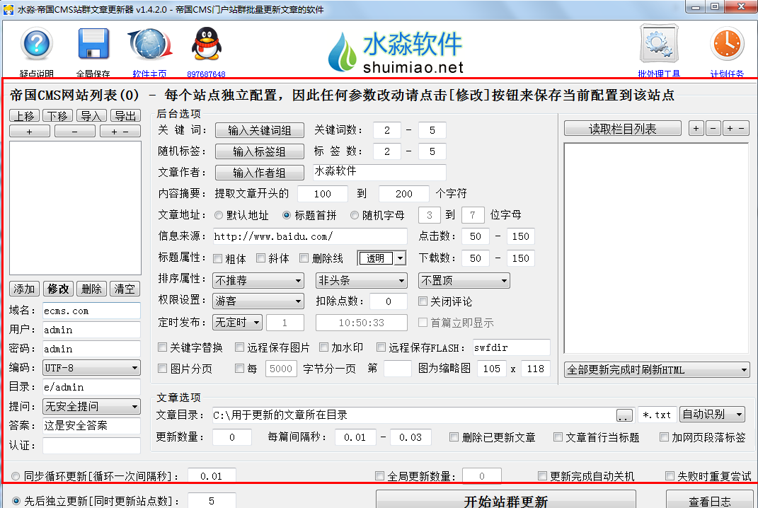 水淼帝国CMS站群文章更新器1.4.2.0更新内容