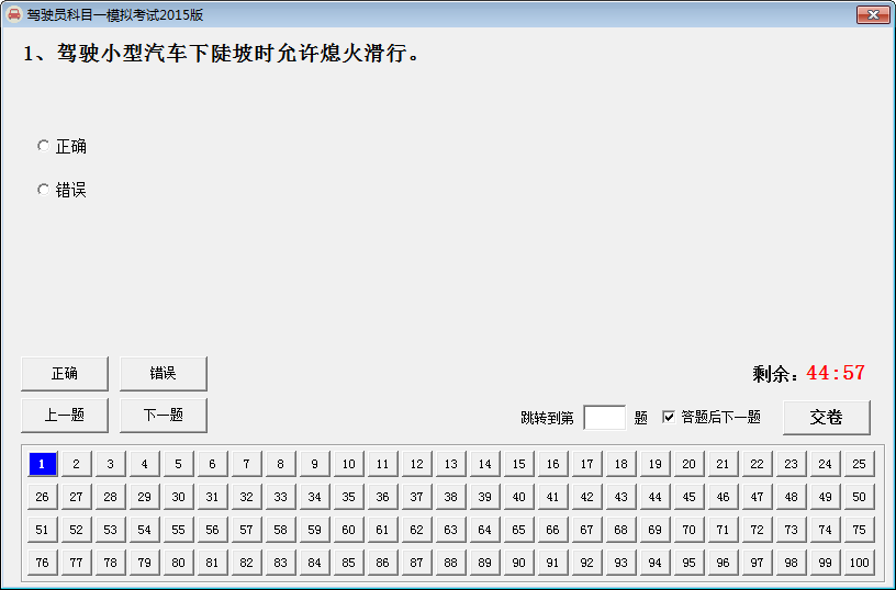科目一考试错误超过10题本次考试就被判为不合格。无论你下面怎么答题,都不会超过90分的。所以你就需要小编给你介绍的这款神器了,驾驶员科目一模拟考试2015最新版。它是一款2015年科目一考试的最新模拟系统,采用公安部发布的2015年最新题库,让学员在短时间内快速掌握科目一理论试题,有需要的快拿走吧,不谢!