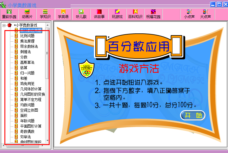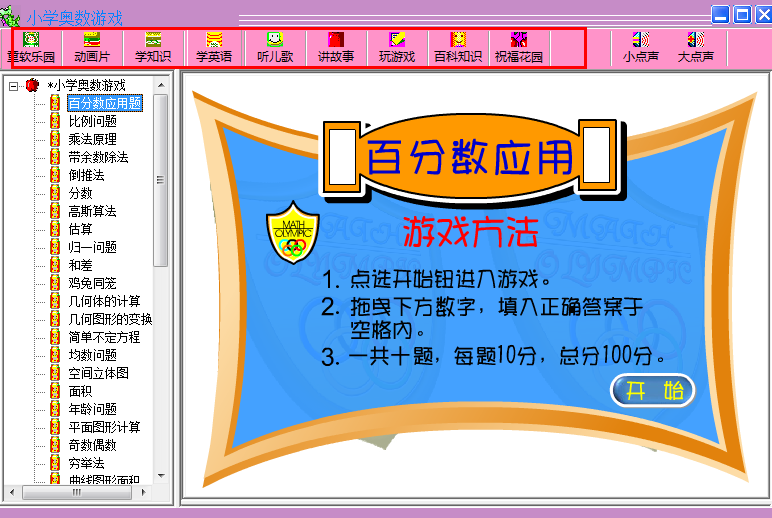 数学知识是很重要的一门知识,在生活和学习中很多地方都要用到数学知识。比如说,物理化学,计算机等等科学都会用到数学。所以说,如果把数学学好了,学习物理化学就有数学基础。小学奥数游戏(奥数教程)这款软件怎么样呢?接下来,介绍一下。