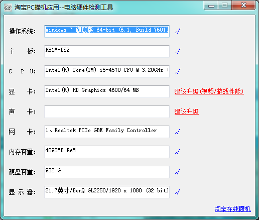 2、检测完毕后,软件会给出电脑各硬件详细型号