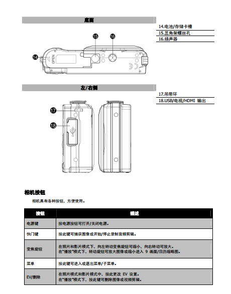 插入SD/SDHC/SDXC 存储卡............................................ 13