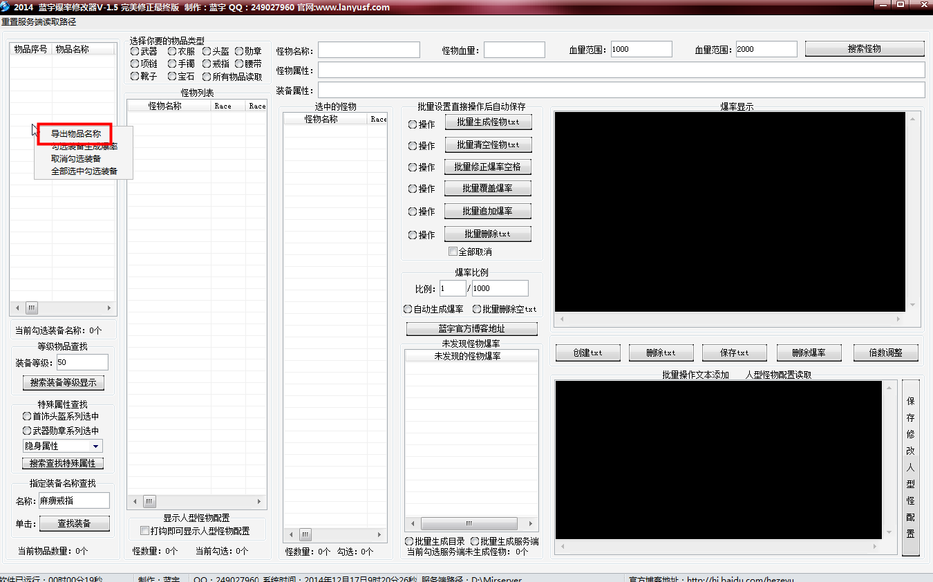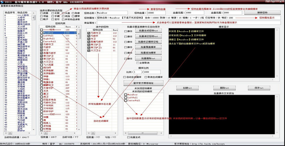 蓝宇传奇爆率修改器2014其实就是专门为传奇用户进行设计的游戏工具,大家现在使用他就可以获得在游戏中引擎爆率修改与批量的修改数据的能力,从而更加轻松的在里面进行游戏!