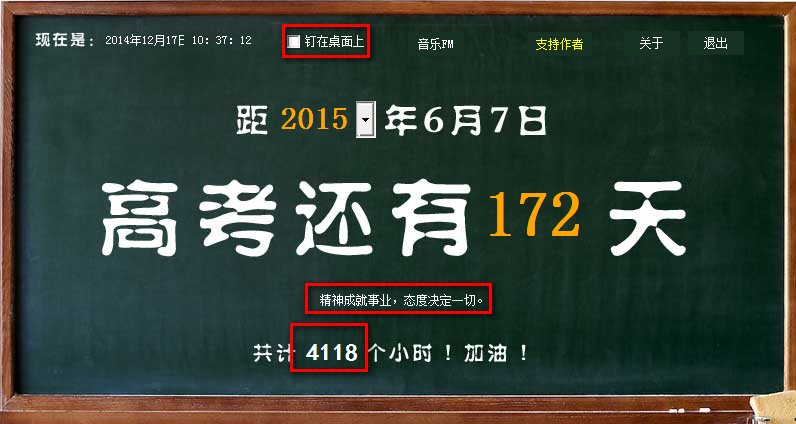 3、每1分钟自动更换显示一条高考励志标语;