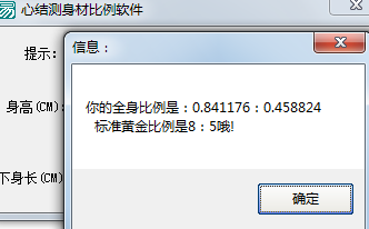 心结测身材比例软件(身材比例计算器)是吾爱网友用易语言制作的一款完美标准身材计算器。能通过输入的数值计算出MM的完美身材指数应该为多少,让MM清楚了解自己身材情况。但仅供参考哦!~