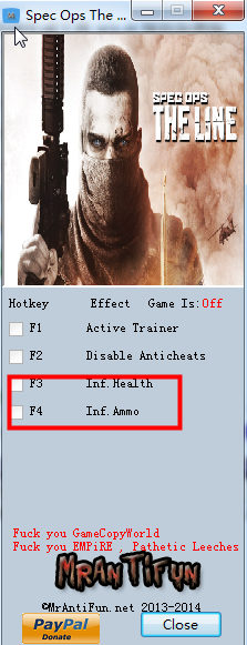 特殊行动一线生机两项修改器热键说明