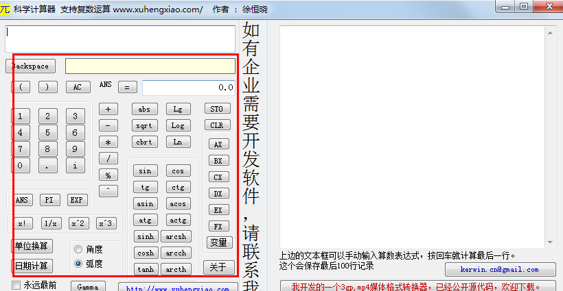 徐恒晓科学计算器下载(支持复数运算)使用方法