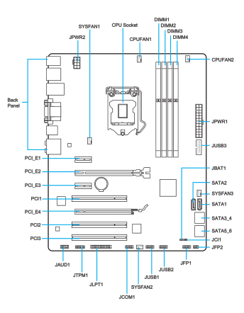 微星Z87-G43(系列)主板使用说明书——主板结构图