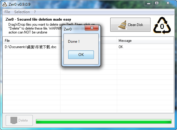 快速删除文件(Zer0)软件操作非常简单,用户只需将需要删除的文件拖拽到软件窗口点击Delete即可删除指定文件。