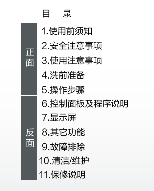 海尔xqg60-10266aw说明书目录
